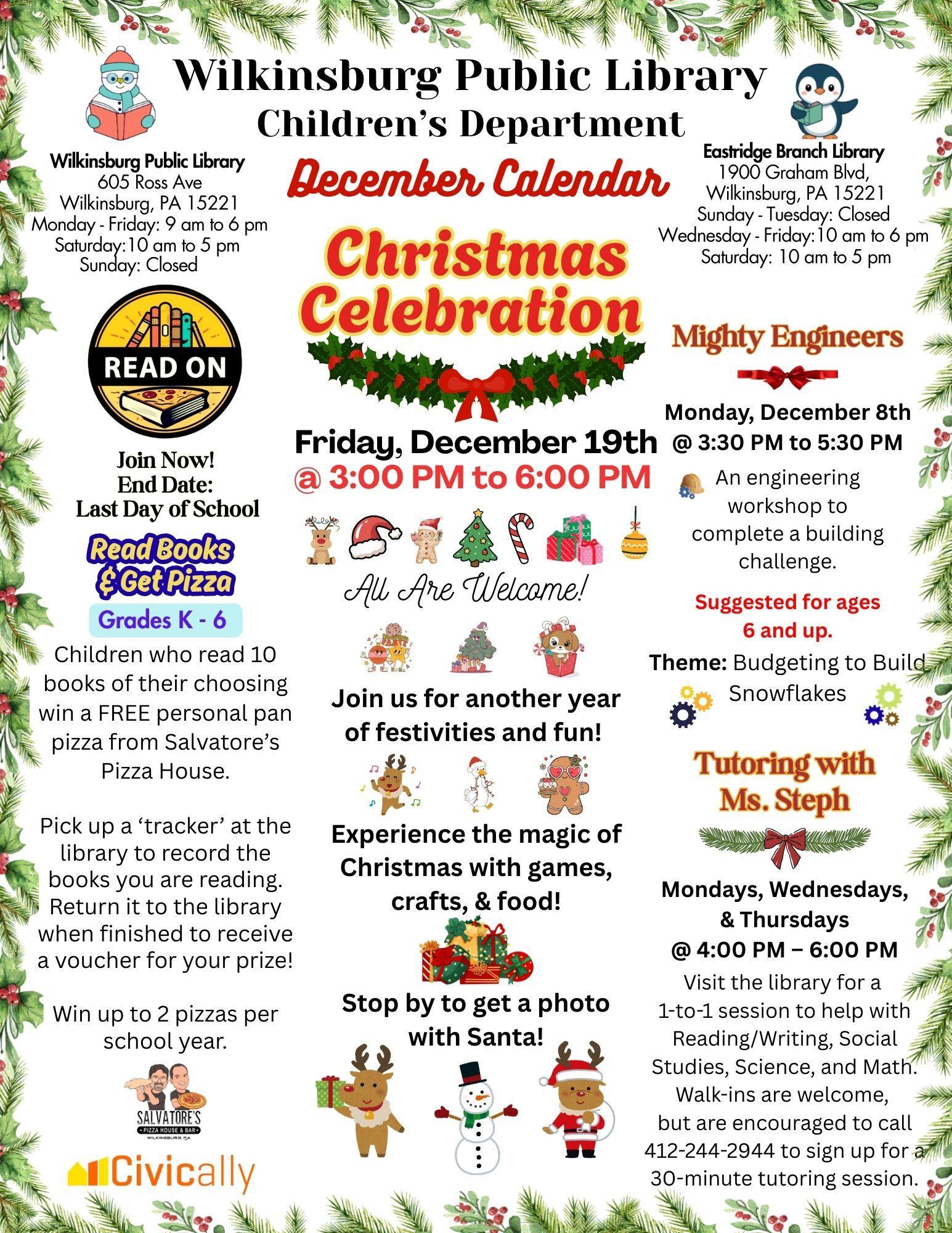 - All are welcome to join us for another year of festive fun! Enjoy games, crafts, food, and a photo opportunity with Santa.